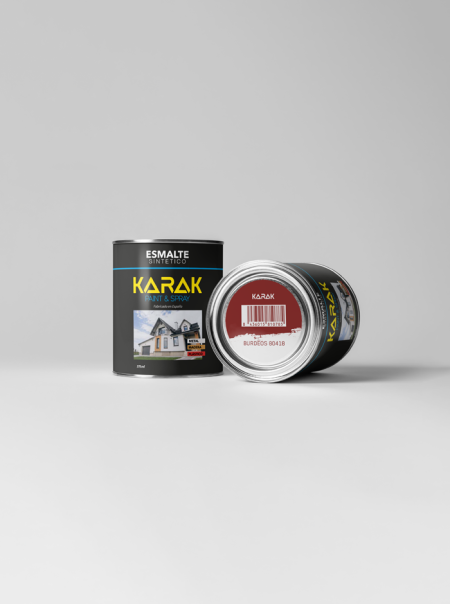 Lata de pintura de 375ml en color Burdeos. Acabado profesional, multisuperficie y para uso en interiores y exteriores, fácil aplicación. Ideal para retoques y reparaciones, así como para restauraciones.